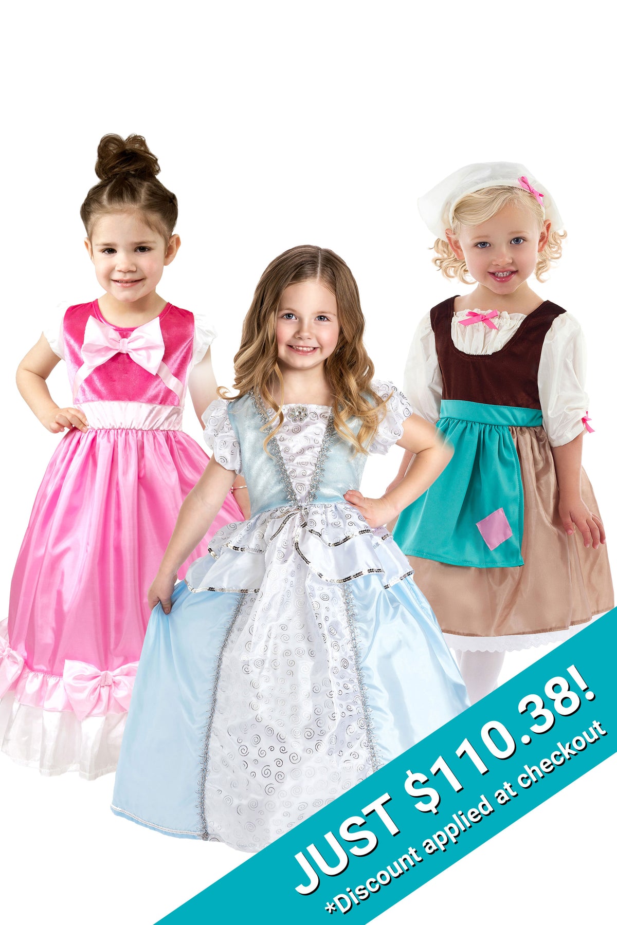 Step into the enchanting world of make believe with this Cinderella Trio, the perfect beginning for your child's dress-up collection! With three exquisite Cinderella dresses, this set is bound to spark endless creativity and imagination. Prepare for a magical journey filled with fun and fairy-tale adventures!