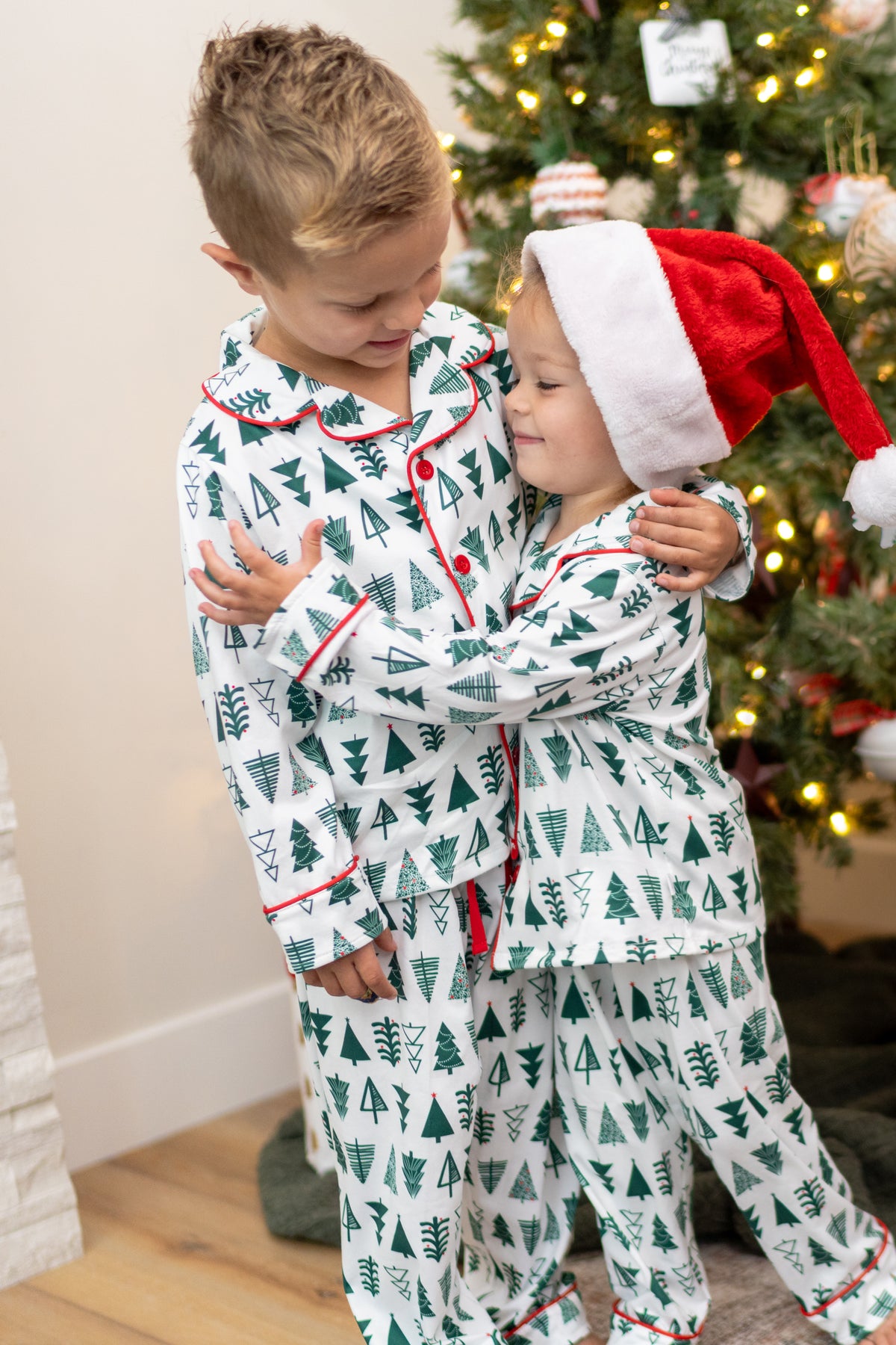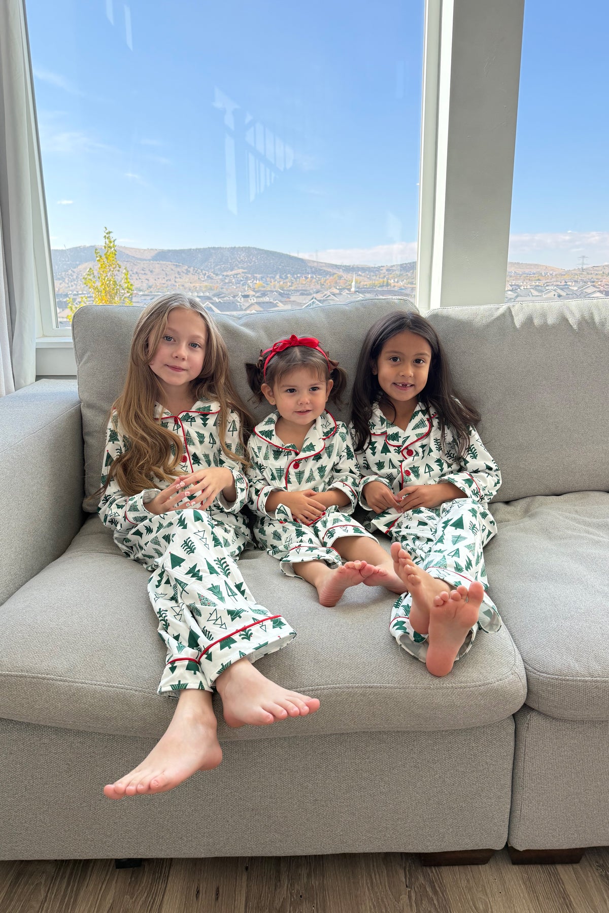 Make bedtime merry and bright with our festive Holiday Pajama Set! Soft, cozy, and covered in cheerful little trees, this set is designed to make their nighttime routine feel extra magical—perfect for story time, cocoa sipping, and snuggles by the tree.