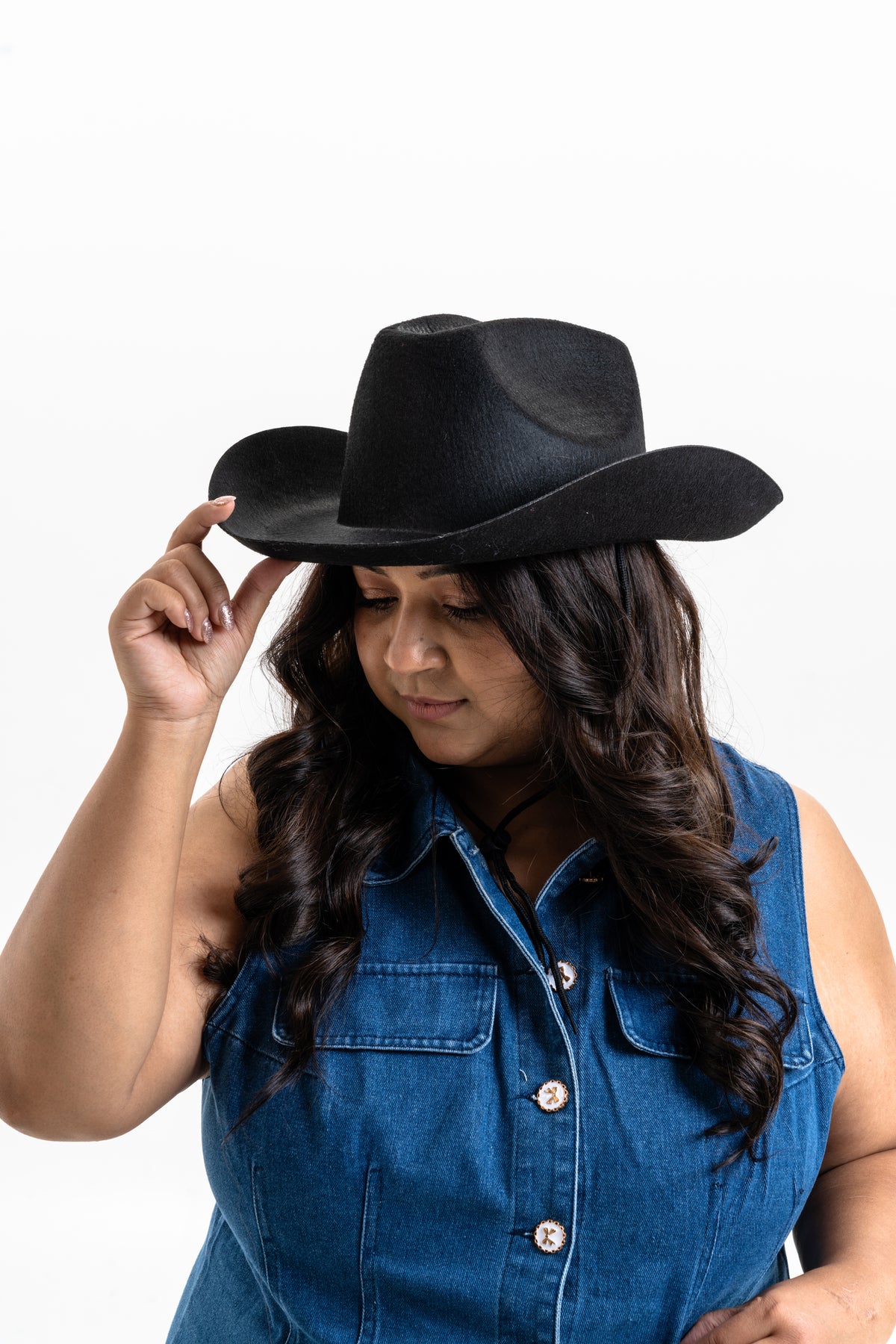 Classic with a hint of attitude, this black Western hat adds effortless style to any adventure.