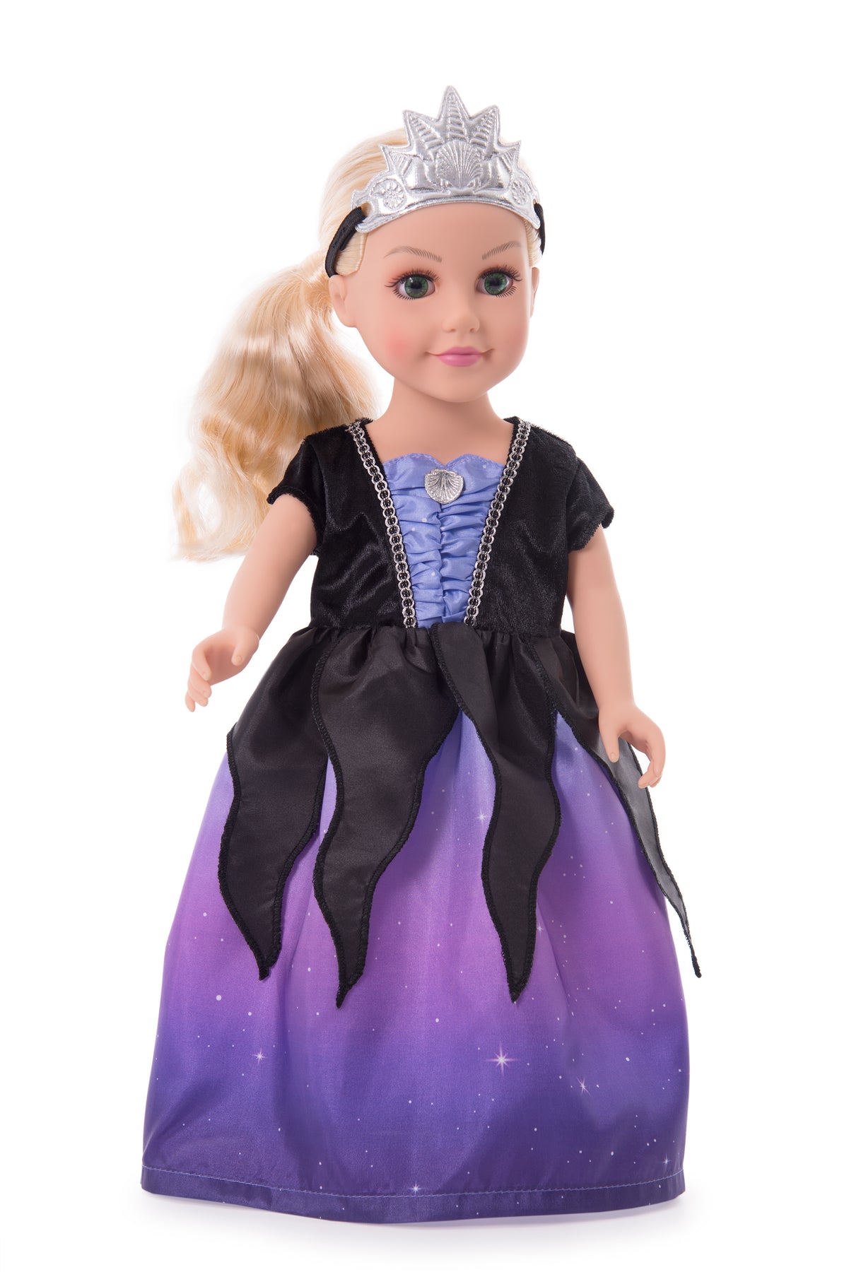 This Sea Witch doll dress with a soft crown will transform your child’s doll into a mystical witch from the deep blue sea.