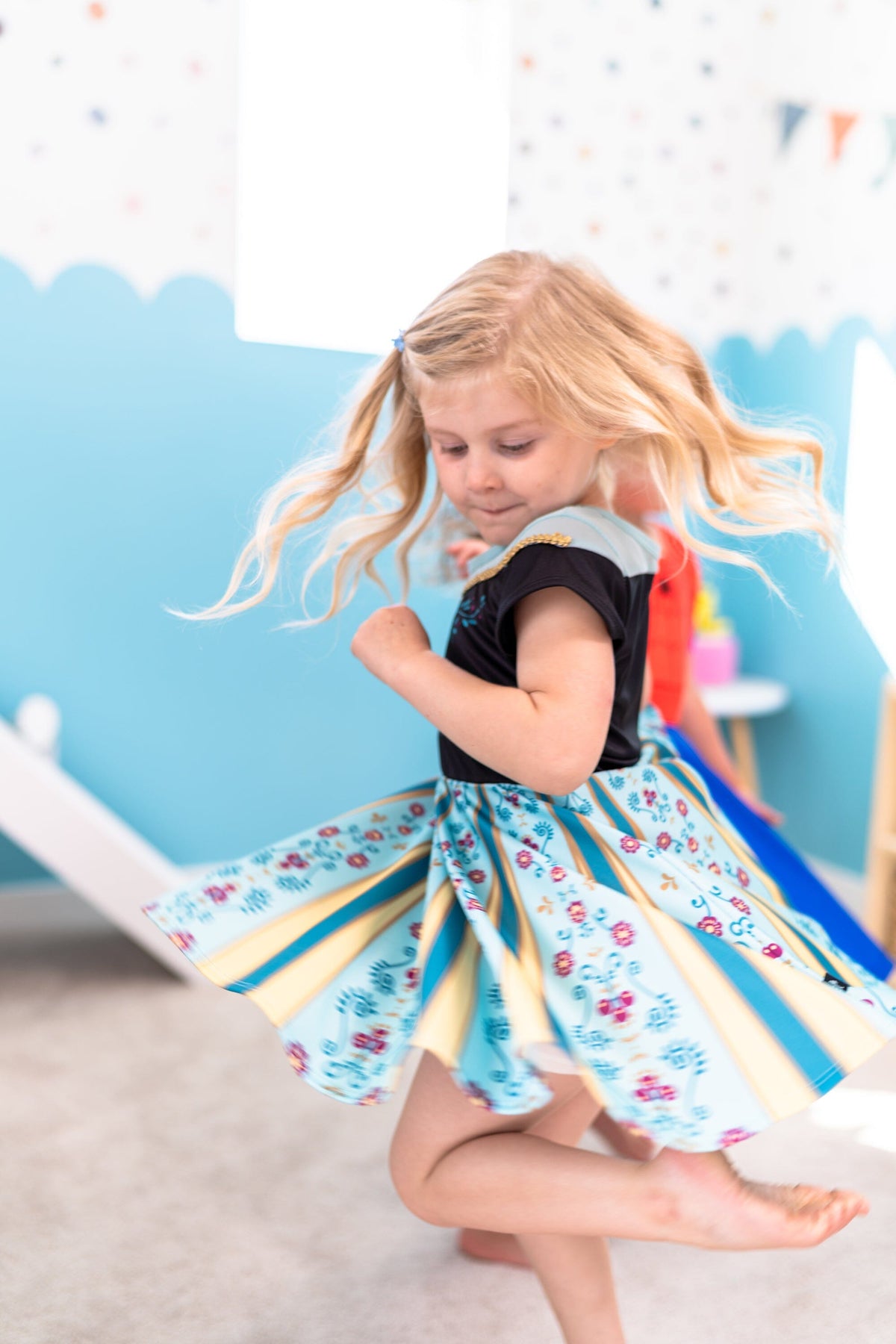 Invite royal charm into playtime with the Alpine Coronation Twirl Dress, perfect for grand celebrations.