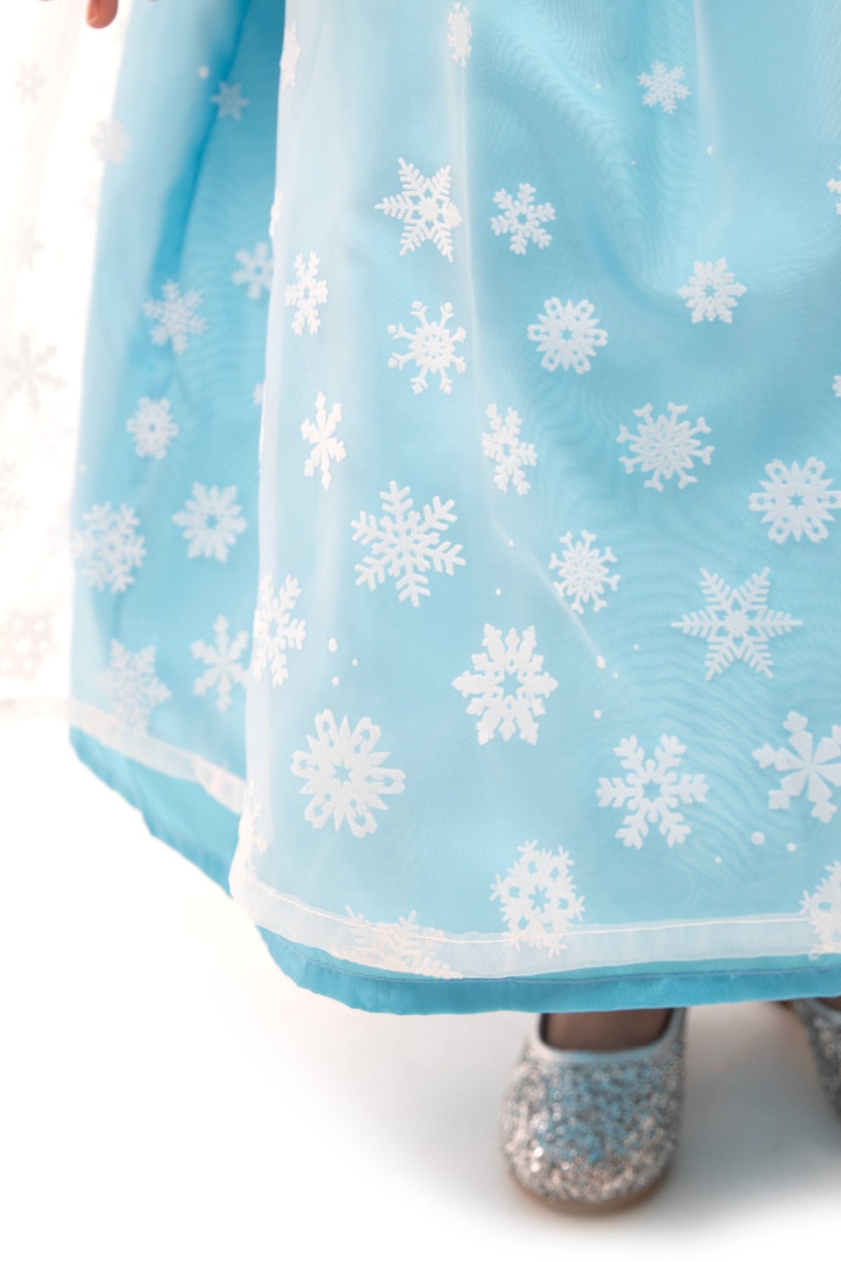 • Blue china silk skirt with a shimmery organza overlay decorated with snowflakes