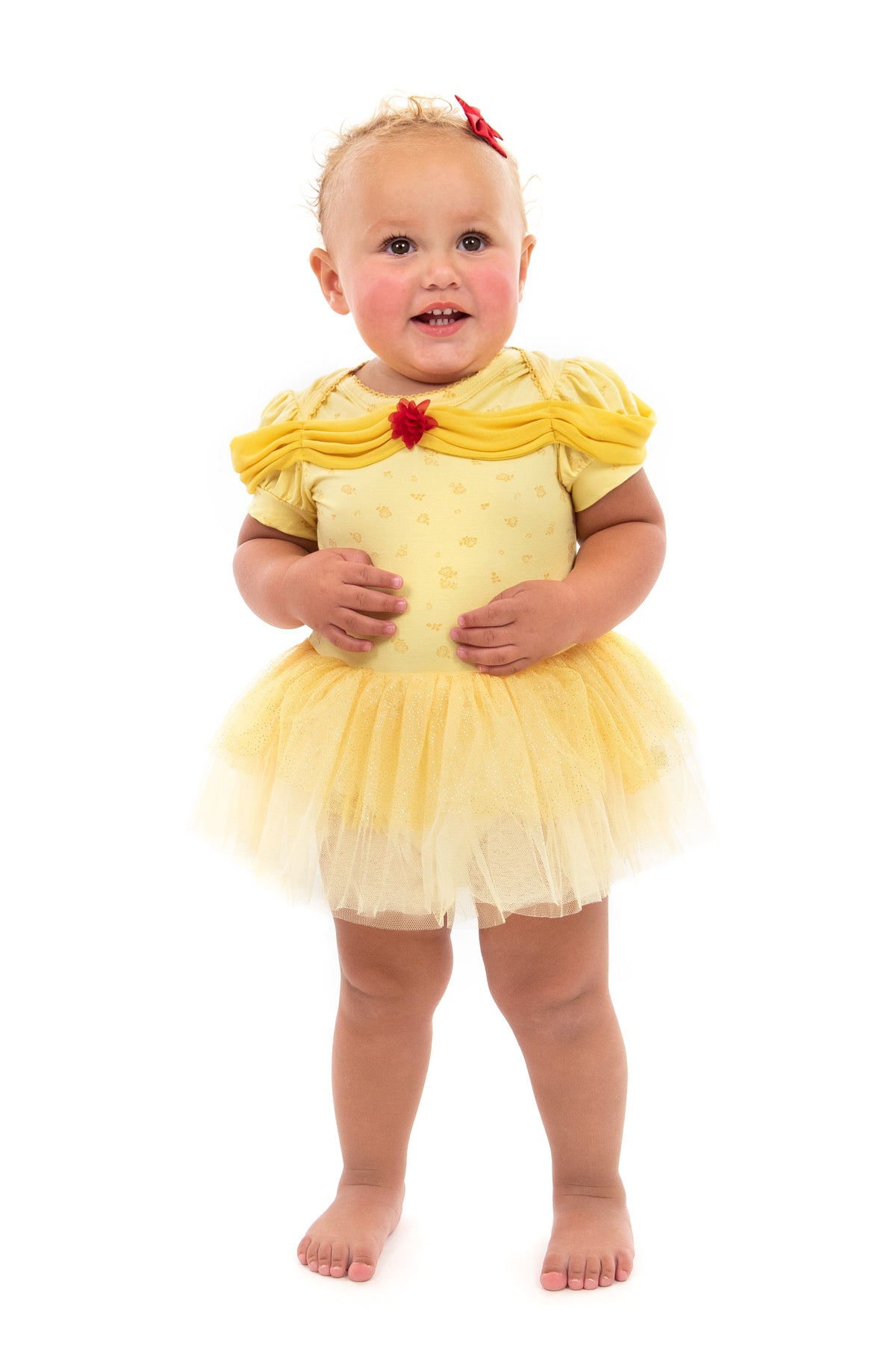 Your little one will be ready to explore enchanted books, discover magical adventures, and lead with love in their Yellow Beauty baby dress.