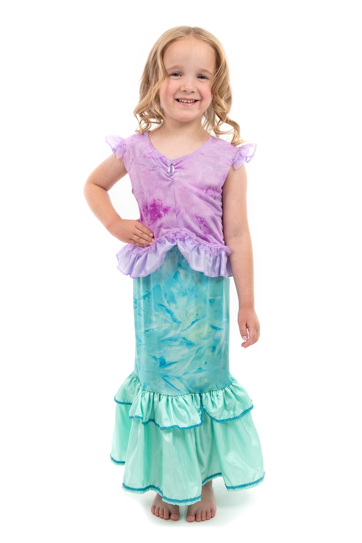 Let your little one plunge into the depths of the ocean and explore the mysteries of the big blue in their new Magical Mermaid princess dress up!